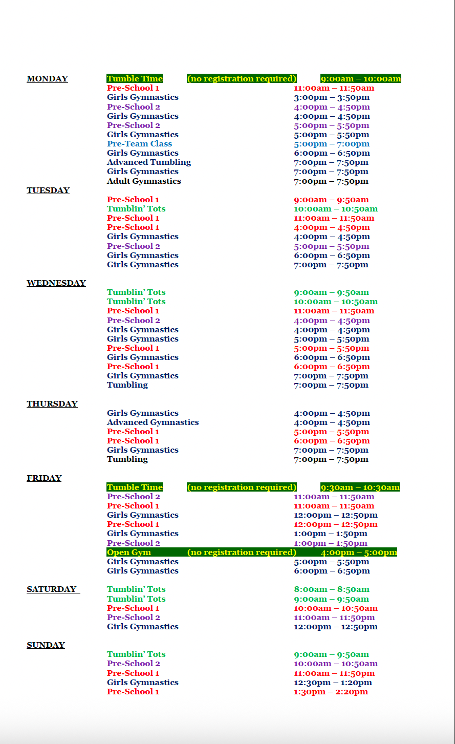 CLASS SCHEDULE